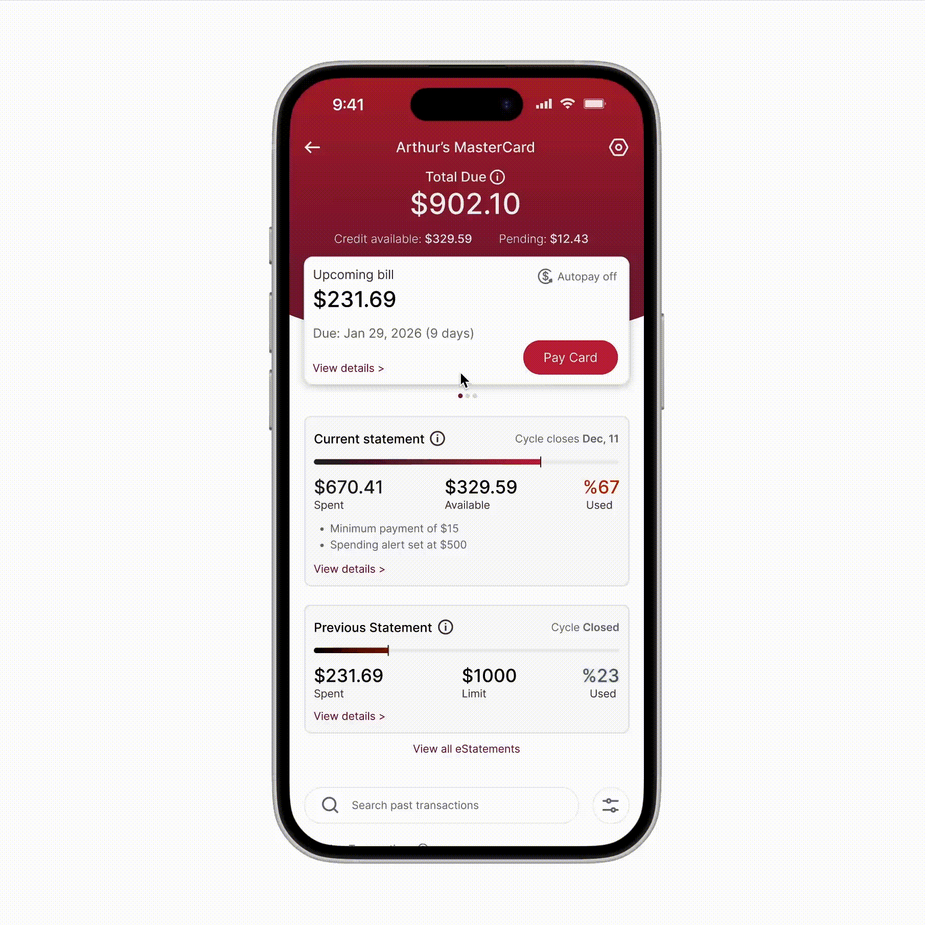 Choose to pay the statement balance, total balance, or a custom amount, giving them control over how they pay.