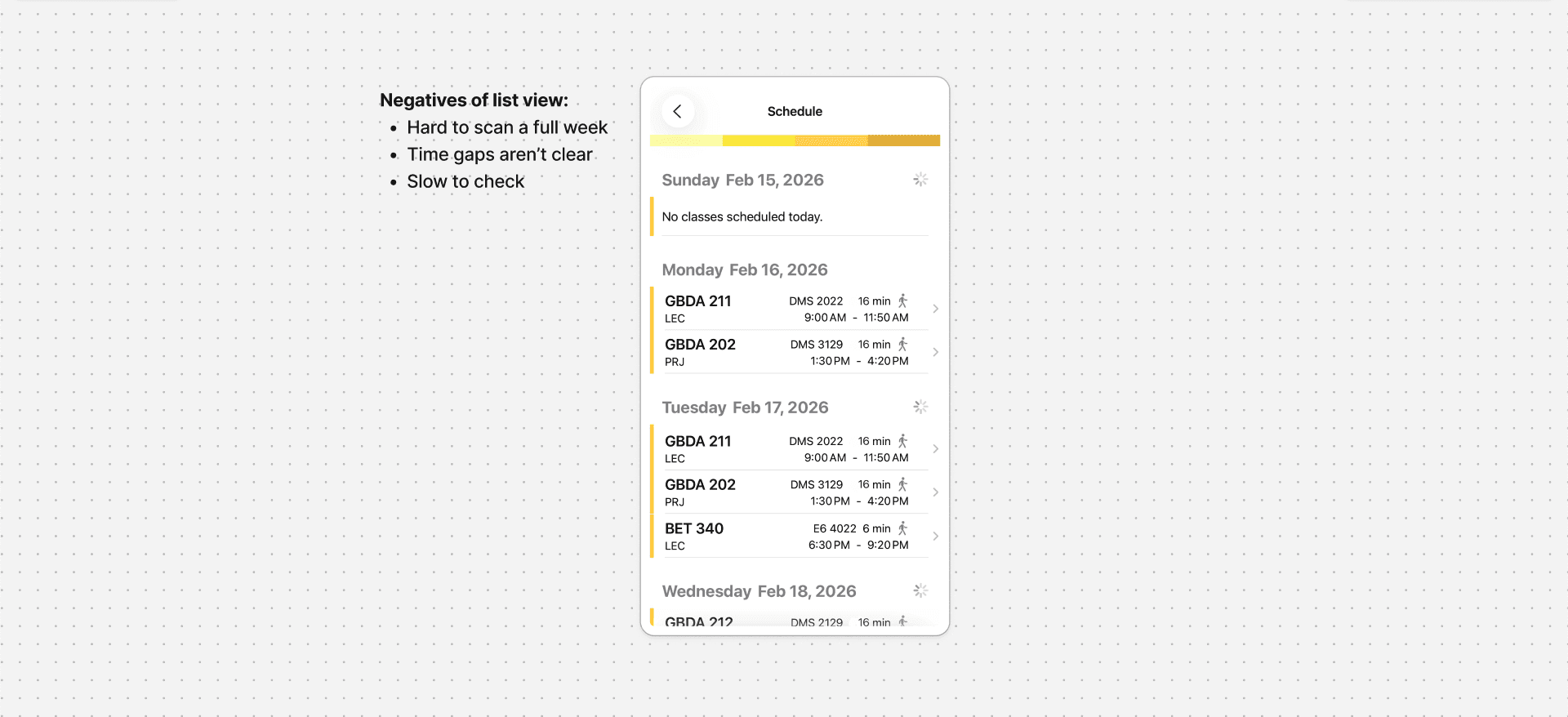 Shows classes, but not related to assignments or deadlines.